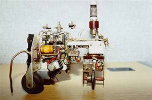 ‘Avoidance of dilemmas and ‘free-will’ were supposedly modelled by the tortoise’s ability to choose between two equally attractive light sources.22 Unlike Buridan’s ass, forever poised between two identical bundles of hay, the tortoise would unknowingly exploit its scanning mechanism to notice, and so to follow, one light before the other. ‘Learning’, ‘association of ideas’, and ‘social accommodation’ came later (see below). Meanwhile, the Latin tag being too much of a mouthful, this early tortoise was quickly named ELSIE (from Electro-mechanical robot, Light-Sensitive with Internal and External stability). The prototype, which was very similar, was dubbed ELMER: ELectro-MEchanical Robot.
