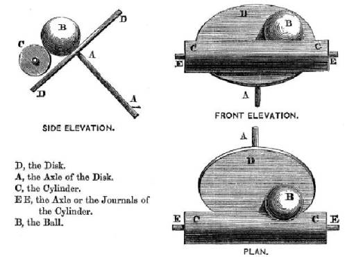 Despite the offer of a grant, Maxwell did not pursue the development of an actual instrument. This was probably because his father warned him that the cost of such a mechanism would far exceed his budget.19 It is also evident that Maxwell had no real incentive to construct a working instrument and was more interested in the theory of the instrument. For example, when James Thomson, a Scottish engineer, published a simpler and more practical version with a perfectly acceptable accuracy, Maxwell wrote him a letter offering suggestions of how to avoid the friction he had introduced.20 Thomson’s goal had been to incorporate pure rolling in a practical mechanism and settled on a design using a sphere and disc. Maxwell’s goal was to design a theoretically elegant instrument.