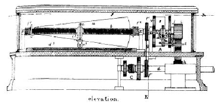 The speed indicator is interesting because it is an early example of an integrator mechanism being embedded into an engineering system. It employed a cone and wheel in the same way as the planimeters had done previously: the cone was rotated at steady speed and the wheel shaft at engine speed, forcing the wheel to travel along the surface of the cone until the mechanical constraints imposed by the integrator were satisfied. The speed of the engine was read by measuring the displacement of this wheel (differentiating a velocity results in a displacement). The inventors then used a series of electrical contacts to sense the location of the wheel and drive a repeater instrument at a remote location.