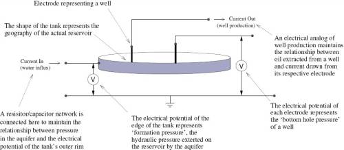 According to a history of oil reservoir simulation by Donald Peaceman, analogue techniques were used to simulate oil fields during the 1920s and 1930s. However, within the reservoir engineering literature, the first well-known application of analogue computing to such problems is attributed to William A. Bruce, a researcher of Carter Oil. He invented his ‘analyzer for subterranean fluid reservoirs’ in 1942, demonstrating that the dynamics of an underground oil reservoir could be represented by electrical circuits.57