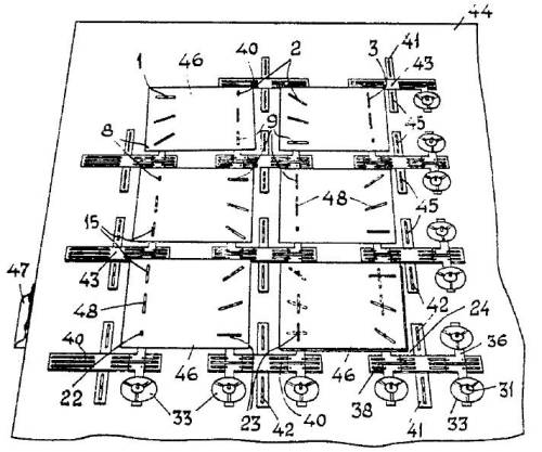 The machine essentially constructed an analogue to the problem. In a typical problem many photographs will overlap, and it is necessary to resolve the different views of each image. In the Jerie computer, the various images were transferred onto overlapping plates and the control points of each plate anchored together. Other than at these anchor points, the plates were free to move within the constraints of their elastic connections, eventually stabilising on a solution that best satisfied the positional constraints between the plates.