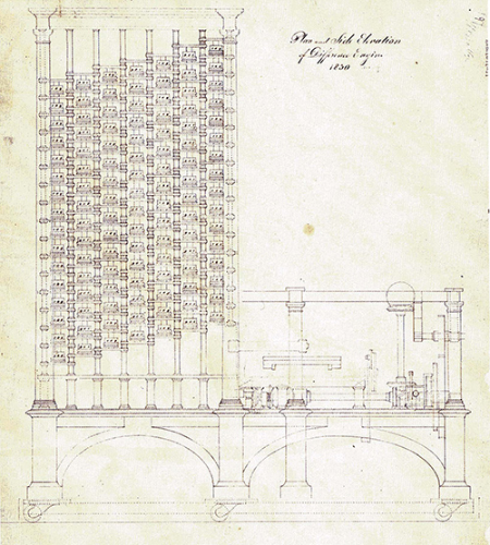 Babbage’s ideas about the promise of machine calculation went beyond abstract speculation. The mechanisms described in the largely unbuilt designs for his machines embody the logical principles of automatic computation as well as the specifics of their execution. Beyond the nuts and bolts of the mechanisms, his Mechanical Notation, a language of signs and symbols of his own devising, provides a formal symbolic description of the operational detail.