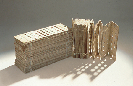 A major feature of the user interface of the Analytical Engine was programmability using punched cards of which there were at least four main kinds. Operation cards instructed the Mill what operation to perform and a string of fan-folded cards constituted a set of instructions to be executed in a fixed sequence that could be extended without practical limit. Variable cards specified the location in the Store from which a number was to be fetched and where the result was to be returned. Number cards held numerical constants and other data and these had a variety of uses. Finally, combinatorial cards controlled the looping function specifying the number of times a fixed set of operations was to be iterated. The matrix of hole positions on each card was distinctive and each type had its own dedicated card reader (see Illustration 10).