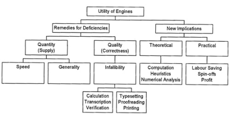 The terms in which Babbage and the Engine advocates framed utility can be seen to fall into two categories: remedies for known deficiencies in tables; and new practical and theoretical implications of automatic computation—how better or differently to do what was already being done on the one hand, and the promise of doing what had not yet been done on the other.